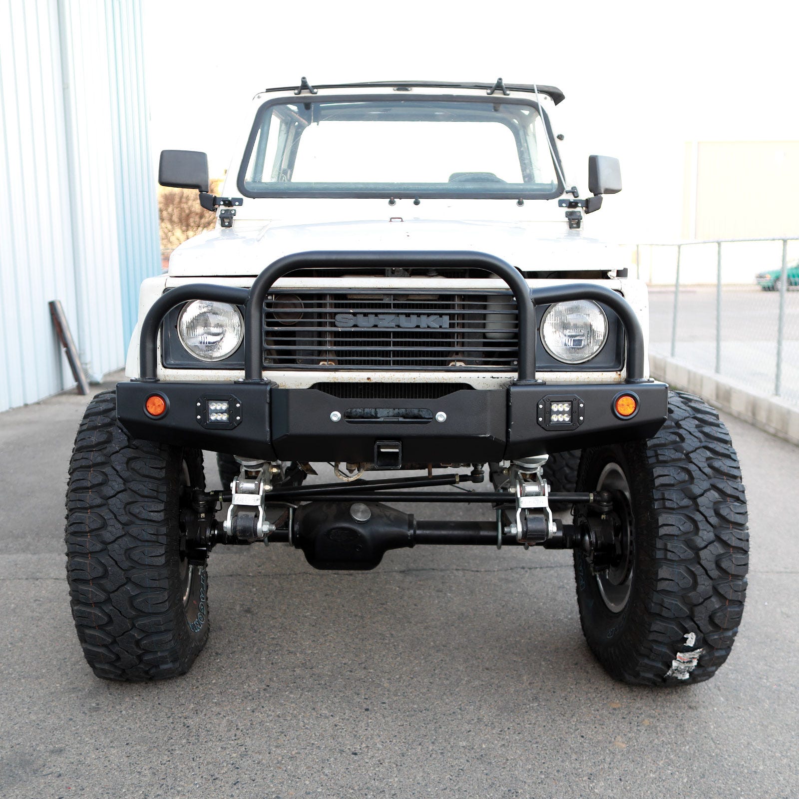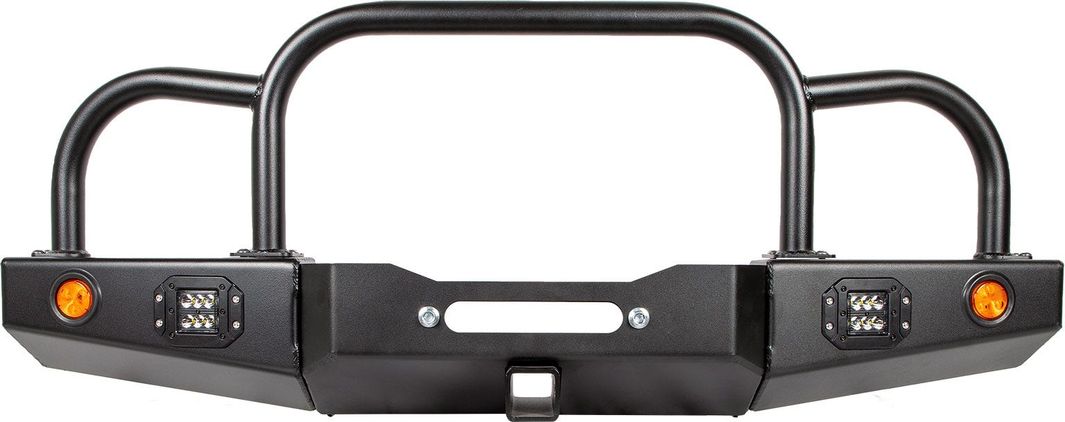 86-95 Suzuki Samurai Front Bumpers - 0-1 Inch Winch Plate Long Ends Grill and Headlight Guard Black Powder Coat Low Range Off Road