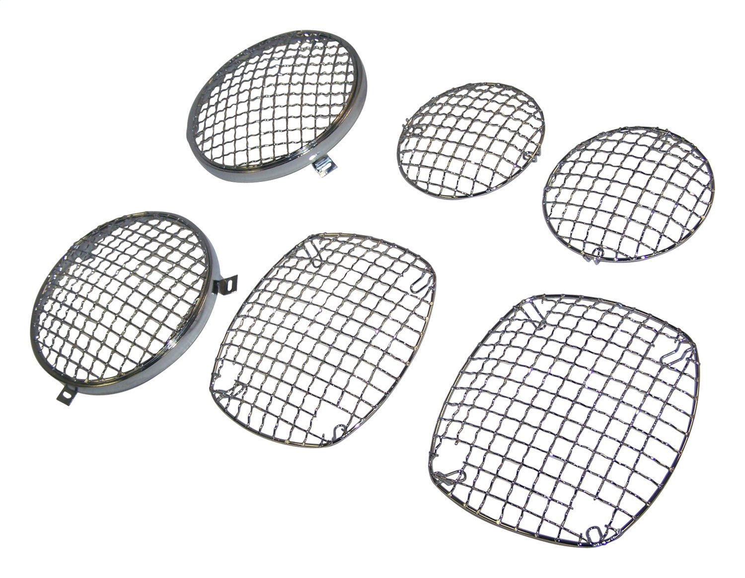 Improve the look of your vehicle and protect it at the same time. RT Off-Roads light guards are are constructed out of steel and are protected with either a rich black powder coat or a chrome finish. The heavy steel construction will protect your lights from limbs, stones, and other obstacles youre faced with on the trail. Drilling is not required for installation. All hardware is included.