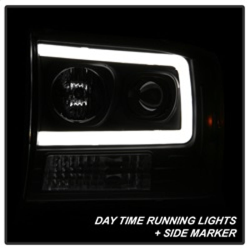 Spyder 99-04 Ford F250 Super Duty Projector Headlights - Light Bar - Black PRO-YD-FF25099V2-LB-BK