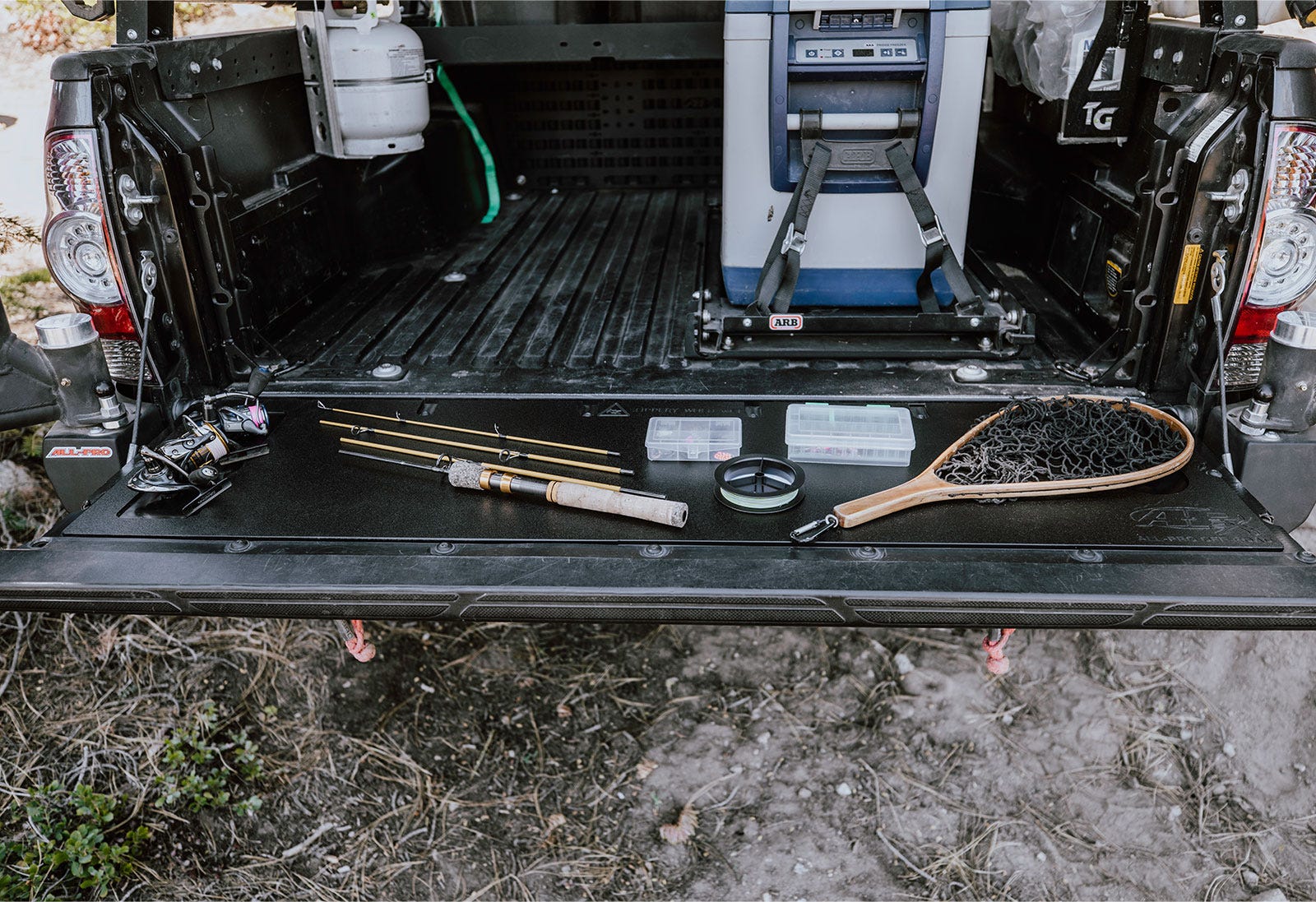 Using your tailgate as a table is nothing new to you. Your tailgate is your go-to workbench, picnic table, cutting board, and stool. The only ones who don't seem to understand this are Toyota themselves as evidenced by the wavy impractical design of their tailgate panel. The stock tailgate panel is a wasted opportunity that you can easily correct with the All-Pro Off-Road Overland Tailgate Table.