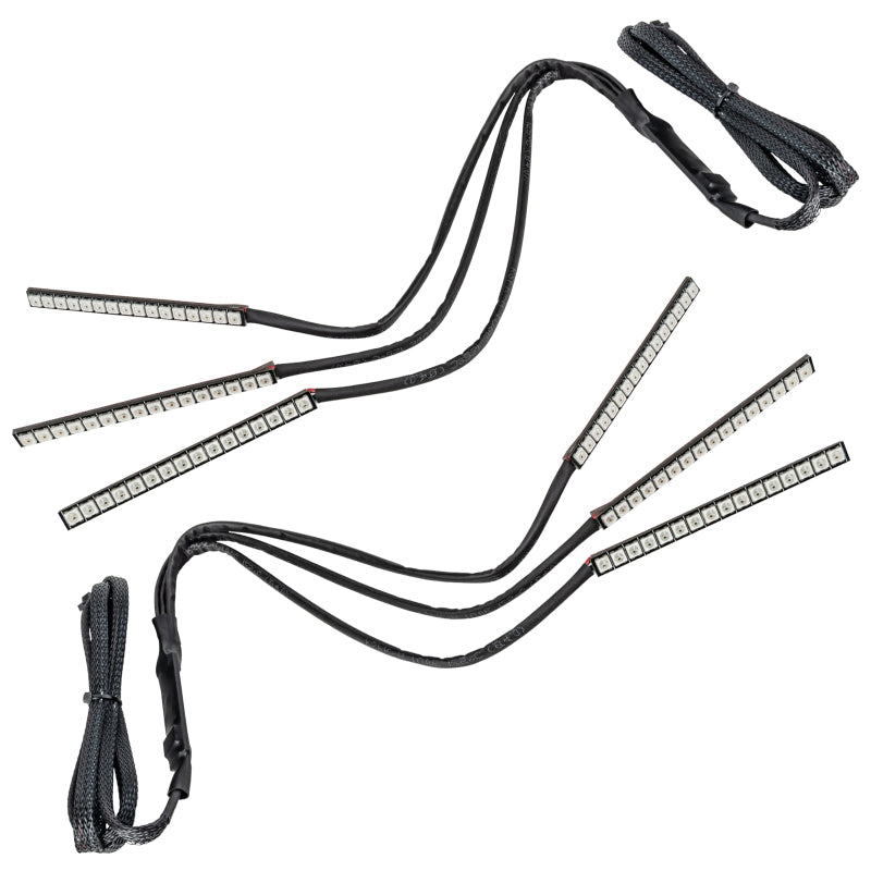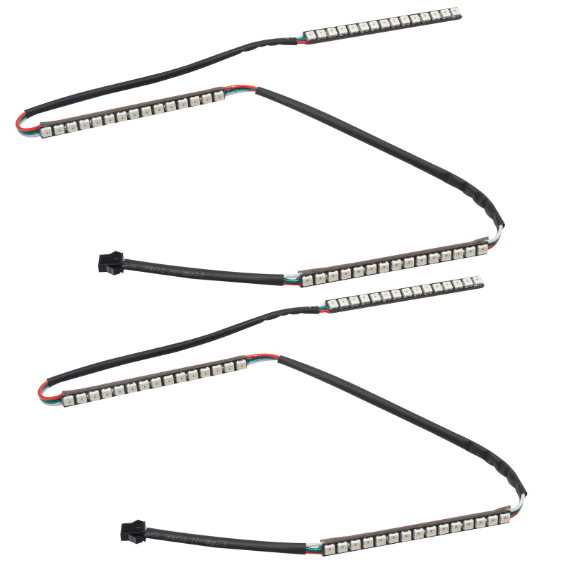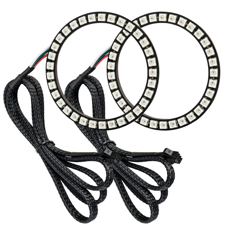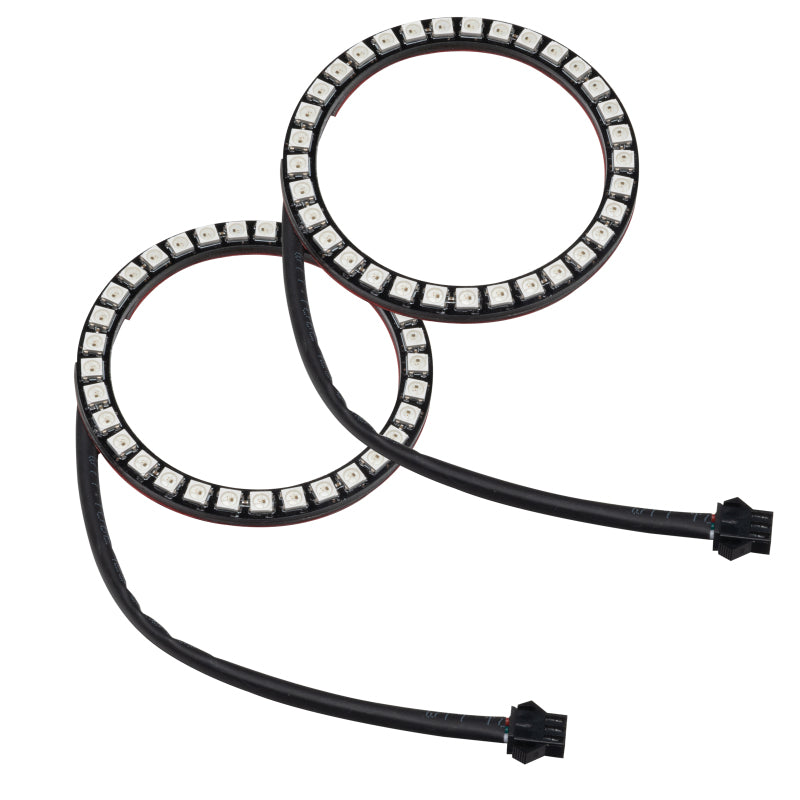 Outfit your ride with this dynamic 2015-2017 Ford Mustang DRL + halo kit! The ORACLE Lighting Dynamic ColorSHIFT(tm) technology is the latest advancement in our expansive lighting modifications. This feature allows the user to run multiple moving color patterns through the product, creating a vivid eye-catching lighting effect. This kit includes a Dynamic Switchback Turn Signal featuring a sequential movement effect through the rings and DRL board. Also included is a Dynamic ColorSHIFT(tm) Demon Eye Kit, which is used to backlight your headlight's projectors. Conveniently controlled through a free smartphone app, the system features over 200 pre-programmed moving patterns as well as static color control and white mode for normal street driving. In addition to the pre-programmed features, the user can also create custom designs through pixel editing in the app.