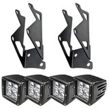 Mount two ORACLE 20W 3 inch Double Row LED Square Spot to the lower windshield of...