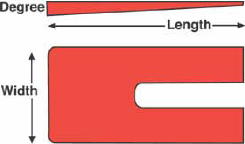 Use these high strength steel alloy shims (sold in a box of 6) to adjust caster and pinion angles 2° on your most rigorous applications. Designed for 4" wide leaf springs, this steel shim will adjust steer or drive axles on everything from cement and garbage trucks to OTR. Using "Z blocks" on your axle? Take a look at our axle spacers, PN 10798 to spread the load and tweak your ride height.Note: Ordering one Part Number supplies six shims in a box. When placing order spring pad length and width is needed.