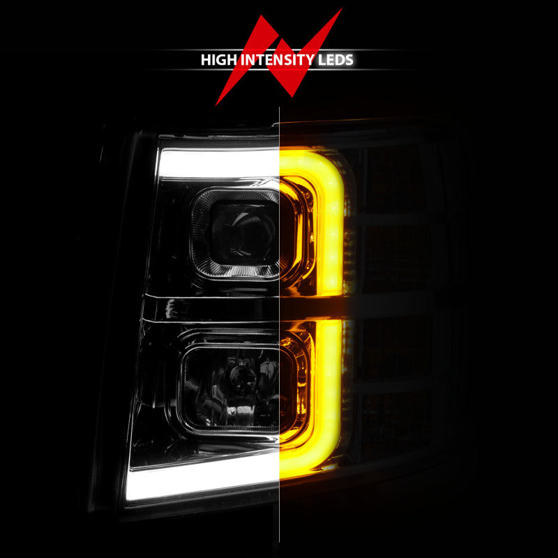 ANZO 2007-2013 Chevrolet Silverado 1500 Projector w/ Light Bar Chrome Housing w/ Sequential