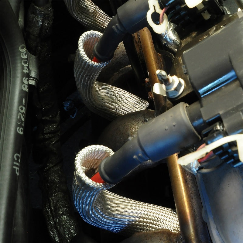 Protect-A-Boots solve the problem of burning and cracking plug boots and wires from header and engine heat. Protect-A-Boots are made from a high temperature resistant glass fiber material and treated with a proprietary coating, Protect-A-Boots provide spark plug boot and wire protection from extreme under hood heat and helps prevent burn-through, hardening and cracking of boots. Our 6'' Protect-A-Boots come with a reinforcement ring at the base for easy plug removal during maintenance. When working on boots with tight bends, try our Protect-A-Boots Ringless instead. For thicker boots, like MSD or Taylor's, we recommend our Protect-A-Boot(TM) Ringless Sleeves; its larger diameter will allow for a simpler install. Non-flammable & protects against chemicals & resists water Universal - fits most straight or angled boots 1 in. internal diameter Double-wall construction for added durability