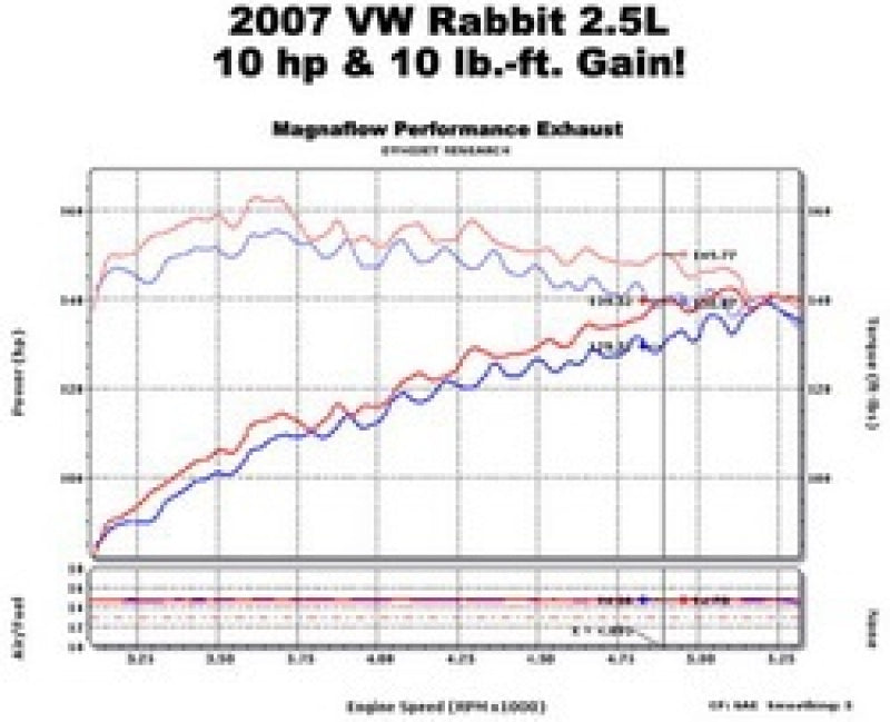 The MagnaFlow Touring Series Cat-Back Performance Exhaust System 16692 16692 is the perfect partner for your 2.5L 2006-2014 Volkswagen to take on a grand tour or a weekend cruise thanks to the powerful, resonant exhaust note and dyno-proven performance it brings to the table. This durable, corrosion resistant stainless steel exhaust kit is engineered to conquer the miles with ease while enhancing your driving experience with Moderate exterior and Mild interior sound levels generated through its fast-flowing, mandrel bent 2.25in. main piping and 1 Straight-Through muffler that terminate in a Dual Straight Driver Side Rear exit with 3in. Polished Welded-On Double Wall Angle Cut Folded Edge tips. 16692 features a cat-back layout design to replace your import's stock exhaust components from the catalytic converter on back. This Volkswagen exhaust system is compatible with 2006-2014 engines. The use of extensive 3D scans made during the development process has resulted in an easy-to-install, direct-fit design that fits your Volkswagen like a glove. 16692 is produced using CNC precision robotic manufacturing techniques and is backed by MagnaFlow's limited lifetime construction warranty.