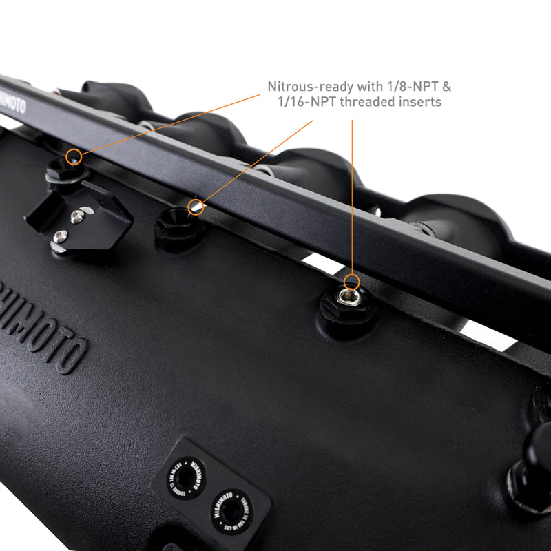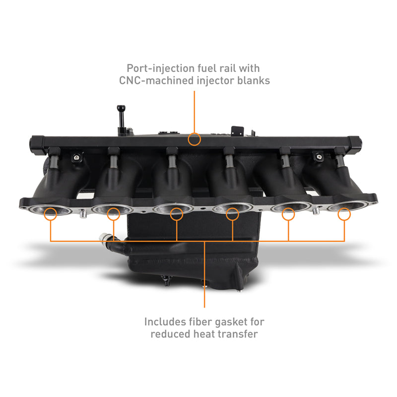 The S58 under the hood of the 2021+ G80 M3 has over 45 years of lineage behind it, and it shows in nearly three-second 0-60 times and over 500 horsepower. But like every generation before it, the G80 M3 has the potential to be even more powerful. Bolt-on mods, big turbos, and tunes can push the S58 over the 800 HP mark, but that much power requires serious cooling. Luckily, Mishimoto has developed a charge air cooler manifold suited for serious power.----The stock G80 M3 charge air cooler is…fine. The combination intercooler/intake manifold design is efficient, but it's let down by the tube-and-fin core crimped onto the thermoplastic plenum. Those crimps are quickly becoming a notorious weak point, with many failing at as little as 3 lbs. of boost over stock. The solution is Mishimoto's cast aluminum and TIG-welded manifold with a robust bar-and-plate core, designed to withstand boost pressures over 60 PSI without breaking a sweat.----Reliability aside, the Mishimoto charge air cooler's performance possibilities are nearly endless. Our core is 33 percent larger than stock, and the manifold flows an average of 14-percent better to each cylinder. That, combined with the increased cooling capacity of the bar-and-plate core, results in reduced pressure drop and intake air temps as low as 11-degrees above ambient under heavy load. Our CFD-designed lower plenum also features an internal diverter to ensure the entire core is utilized and each cylinder receives even flow for safe and optimal fueling. The cast and CNC-machined runners feature O-ring grooves to accept factory seals, and we've included a fiber gasket that insulates the runners from engine heat for those seeking every degree of cooling.