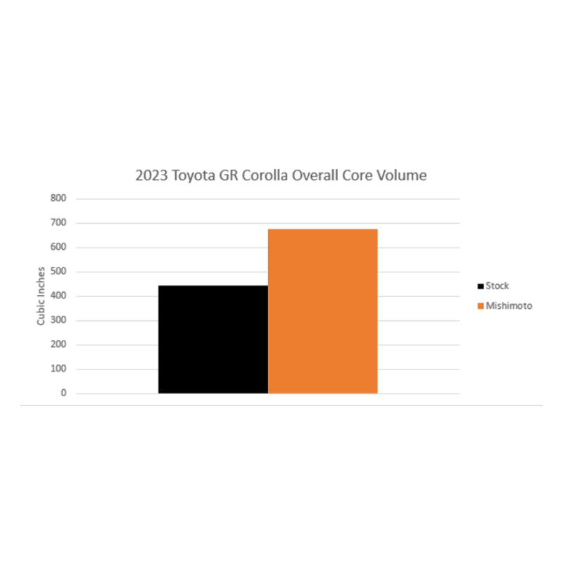 Upgrade your 2023+ Toyota GR Corolla with the Mishimoto Performance Intercooler for a remarkable boost in performance and efficiency. This direct-fit intercooler features a robust 4” thick bar-and-plate core, ensuring superior heat transfer. With a 52% increase in core volume and a 10% reduction in airflow restriction compared to the stock intercooler, it significantly enhances your vehicle's cooling capabilities. Enjoy cooler air with a reduction of 38.5°F in intercooler outlet temperatures, translating to bolt-on power gains of 11.42 horsepower and 14.93 ft-lbs of torque. The intercooler’s durable cast-aluminum end tanks and CNC-machined inlet/outlet ensure smooth airflow and lasting durability. --Available in a sleek silver or black powder-coated finish, the Mishimoto intercooler not only performs exceptionally but also looks great. Plus, the anodized aluminum ducting maximizes airflow through the external fins, further improving cooling efficiency. With the Mishimoto Lifetime Warranty, you can drive with confidence, knowing your investment is protected. Don’t settle for stock
