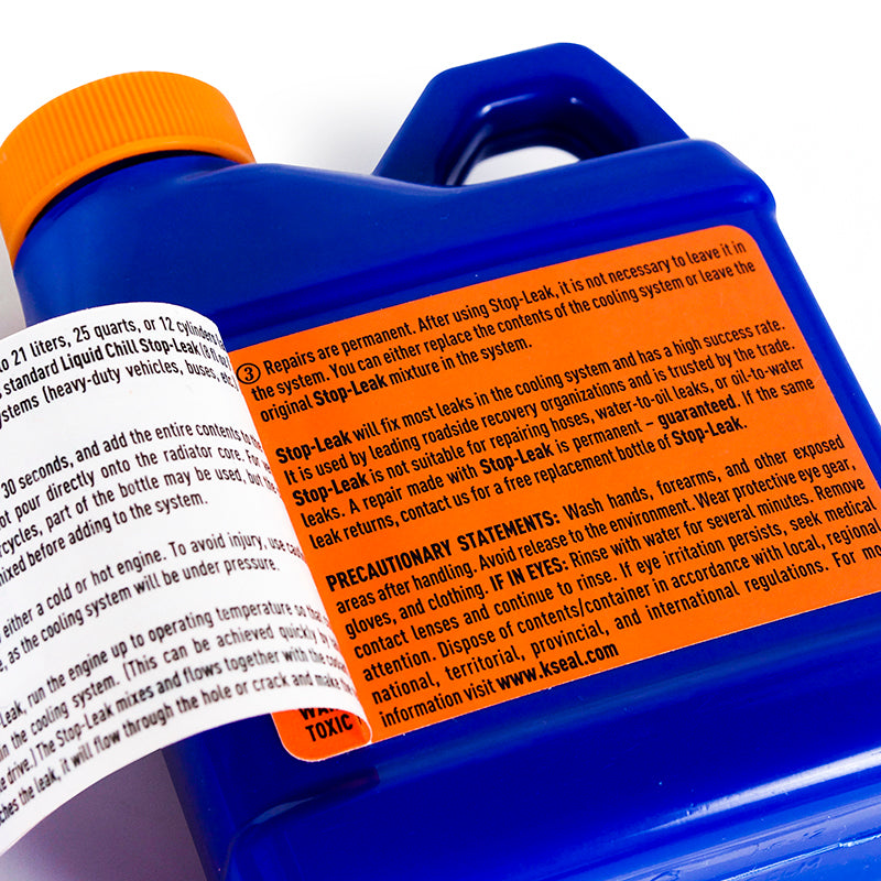Disaster rarely strikes at opportune moments when you have all the tools and resources to overcome it. Radiators crack at the track just after the last parts store closes. You got the last fitting they had but went one rotation too far and righty-tighty became righty-loosey. Rent, the electric bill, and that cracked block came due on the same day. It's Sunday night, 10-degrees outside, there's a puddle of coolant under your car, and you just need to get to work tomorrow. Sometimes, being an enthusiast means learning how to pivot and do what's necessary to get home. For those times, Mishimoto is here with our tested and proven Liquid Chill Stop Leak by K-Seal.----This stop leak has been independently lab tested and proven to seal holes up 0.6mm in diameter and cracks 0.25mm wide by 12mm long, without clogging your radiator or engine coolant passages. The key to this ability is its special blend of microfibers and copper particles that are small enough to flow freely through the cooling system. When pushed through a hole or crack, those particles and microfibers begin to build a wall that seals the leak. Heat and exposure to atmosphere or combustion gasses then cure the sealant for a permanent fix.----The best part of our stop leak is its simplicity. Simply shake the bottle, add it to the cooling system, and run the engine. Liquid Chill Stop Leak is compatible with all coolant types and doesn't require any special preparation. Liquid Chill Stop Leak provides a permanent seal without clogging cooling passages, so it can be left in the system or flushed with your next coolant change. So, if you're in a pinch, or are just tired of hunting for a solution to your coolant leak, look no further than Mishimoto's Liquid Chill Stop Leak.
